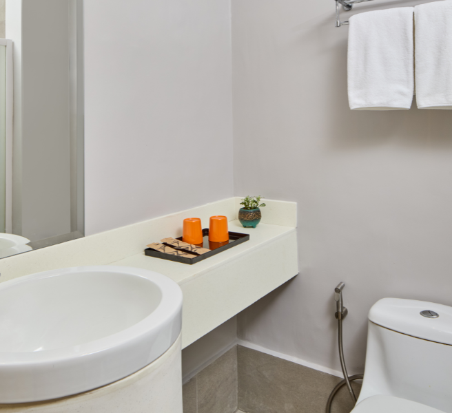 Since I always stay longer, I bring my own toiletries and hangers. The bathroom is big enough. The best is the rain shower with strong water pressure. The cleanliness-Cleaning crew is always on the roll cleaning the whole hotel and make it so shiny and spotless. Outside premises is also clean. Location-very convenient with Robinsons Mall at the back of the hotel. Taxis are always available in front. Lacson street for local jeepneys is 100 meters away. When arriving at night just take the street by the mall where it is lighted and when arriving very late just take a taxi. The street is not well lighted. One rule that I like is no eating in the room. You can buy food and bring it to the hotel but they provide a common place where to eat your meals. That way your room is ants and bugs free. Who doesn't like it? There is a small kiosk with laundry service by the lobby with a very friendly young female employee. There is also a car rental service. A Café is coming soon. If there are only 2 hotels left standing in Bacolod City-Go Hotels with pay and L' Fisher for free, I will absolutely without hesitation choose Go Hotels Bacolod. This is a very simple budget unpretentious hotel. I feel very comfortable with the place and all the employees. I will stay again in Go Hotels Bacolod and I highly recommend it.